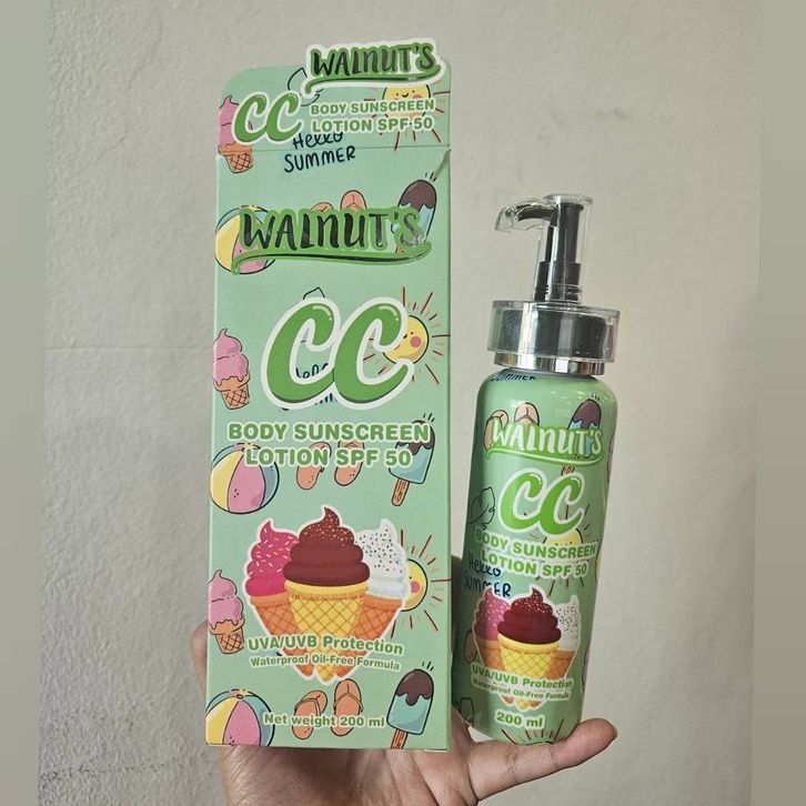 Walnuts CC Body Sunscreen Lotion SPF50 UVA UVB Protection Waterproof Oil Free Formula