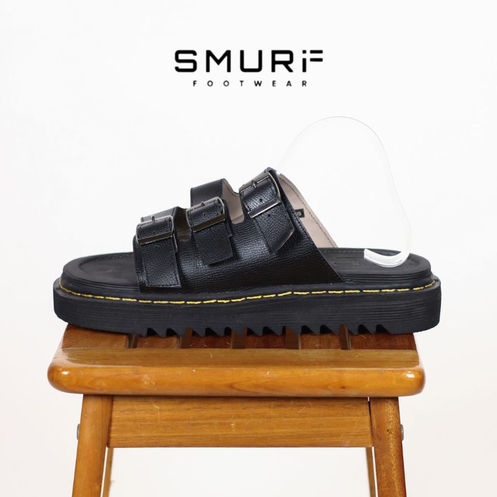 Sandal Pria Smurf Footwear - Riley Black - Sandal Kulit