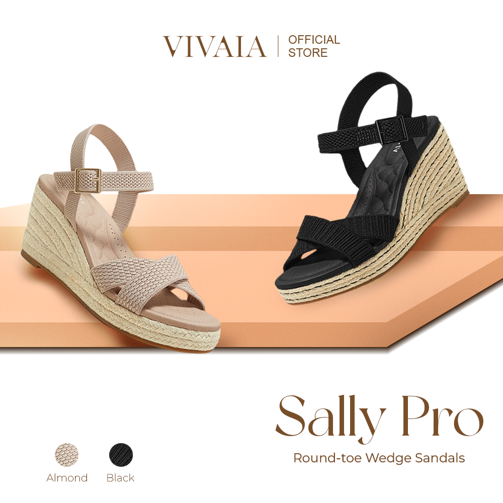 Vivaia Sepatu Wanita Round-toe Wedge Sandals (Sally Pro) - Almond | Black