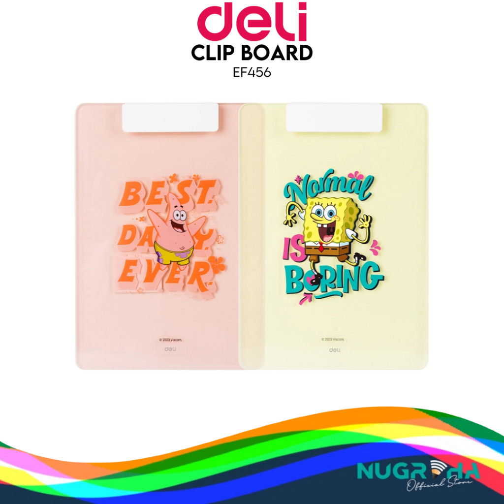 Deli Spongebob Papan Jalan / Papan Ujian / Clipboard Folio F4 Bening MIka Tebal F456