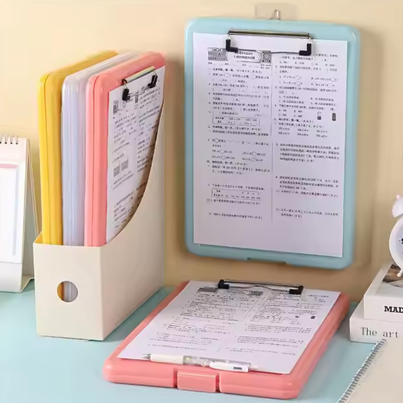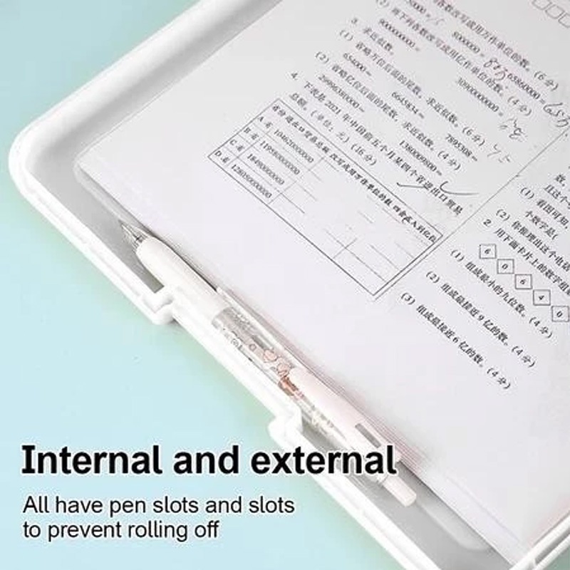 A4 2 In1 Clipboard + Storage Alas Papan Ujian Papan Jalan Klip Kertas Ujian Clipboard Clip Board
