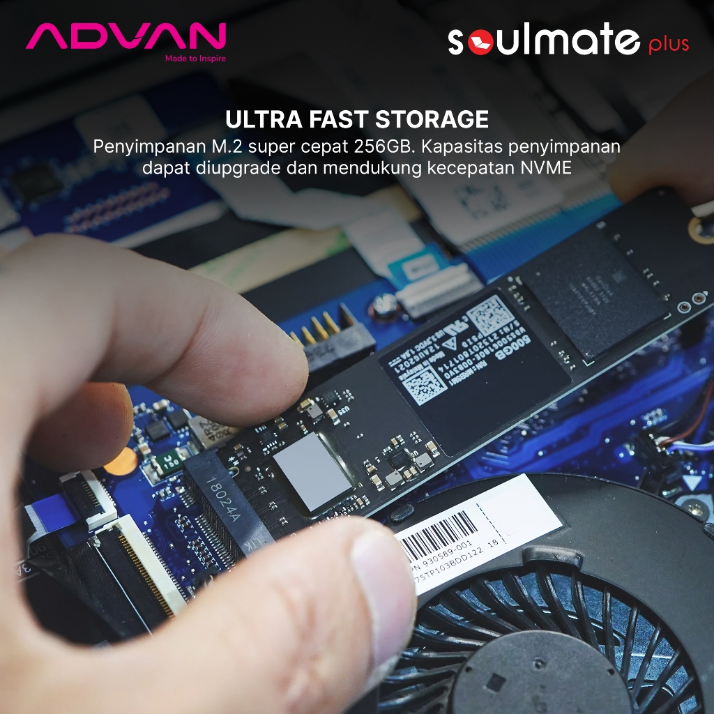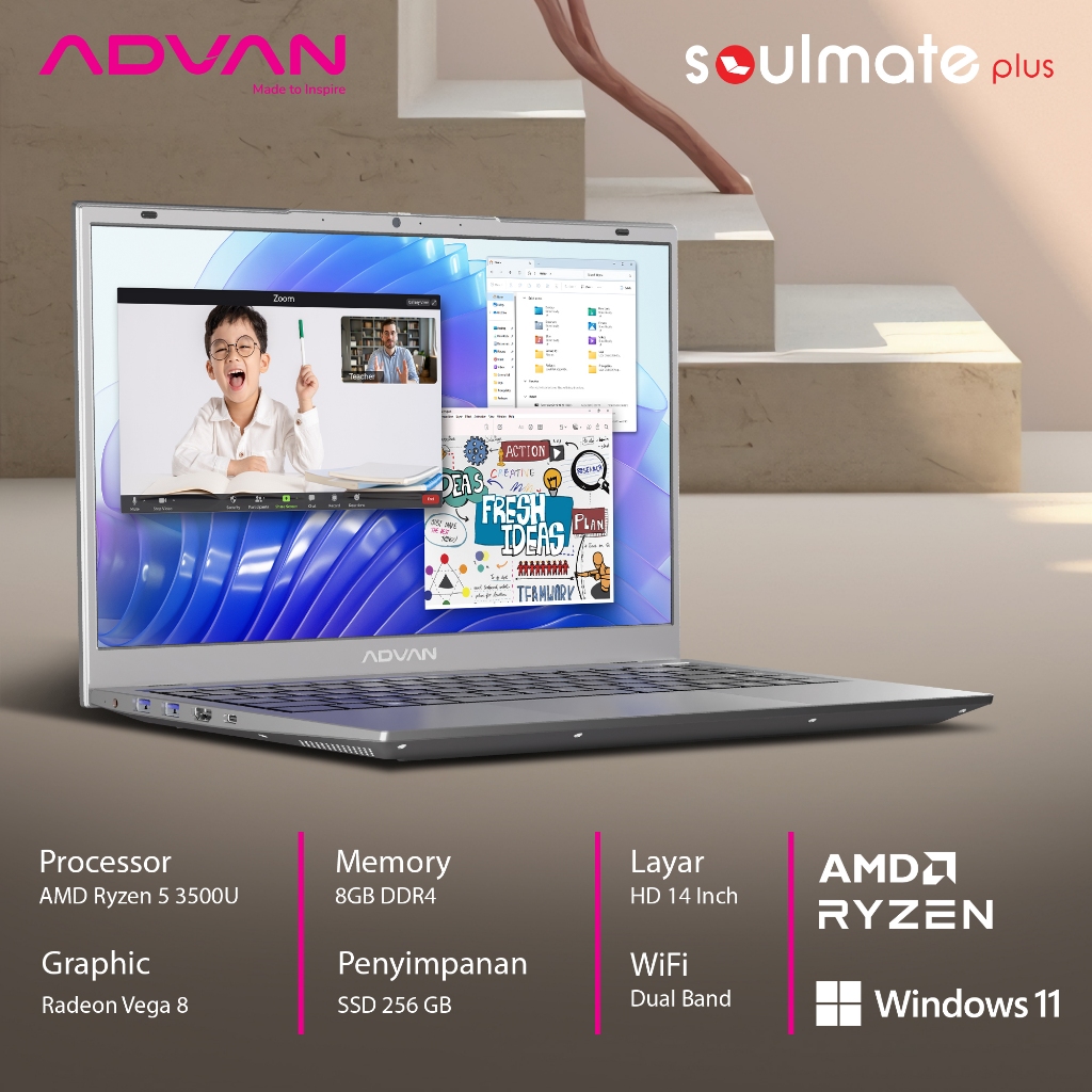 ADVAN Laptop Soulmate Plus | AMD Ryzen 5 3500U | 8GB/256GB Upgradable | WIFI 5 | Free WIndows 11 | Garansi Resmi 1
