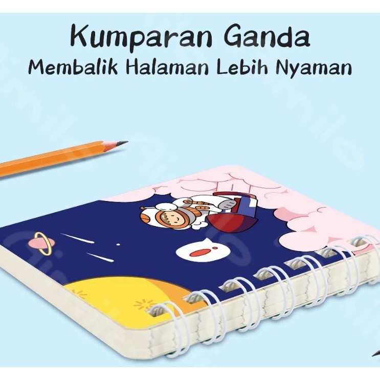 Notebook Mini Size A7 Ring / Buku Mini Karakter Lucu 50 Lembar Satuan