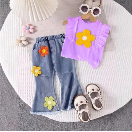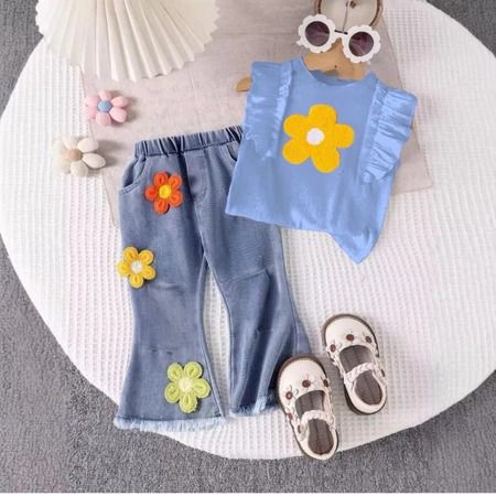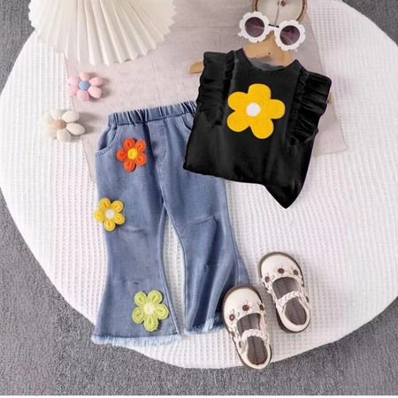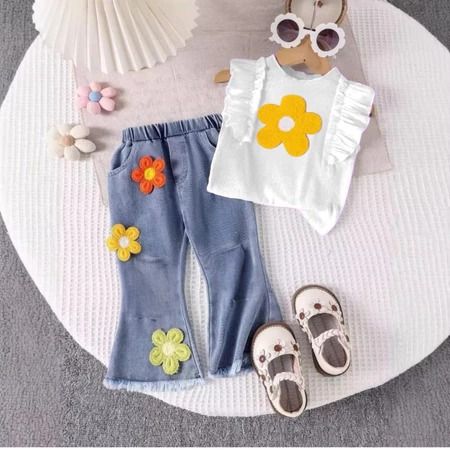 setelan anak perempuan baju dan celana denim panjang anak terbaru 1-5 tahun ardan baju anak