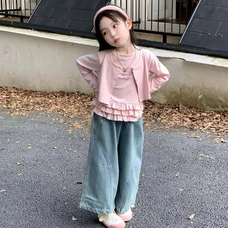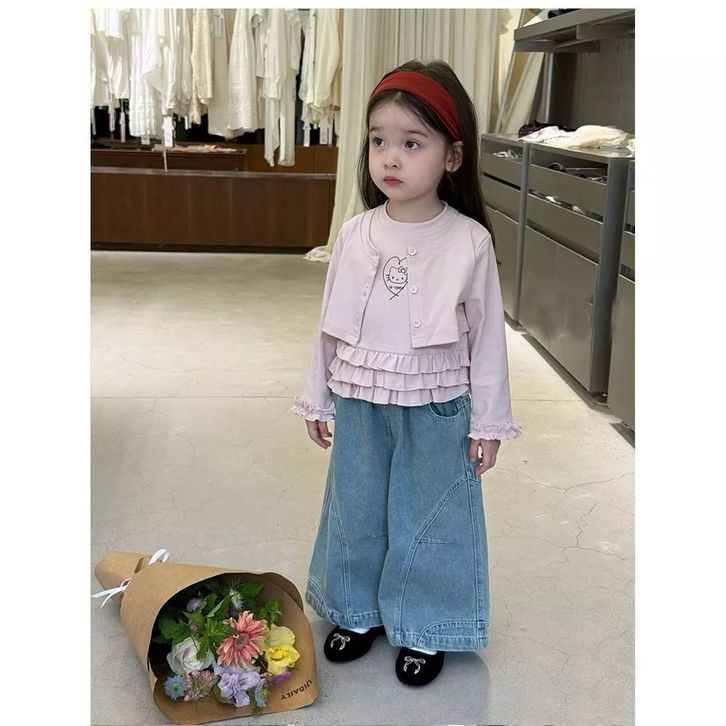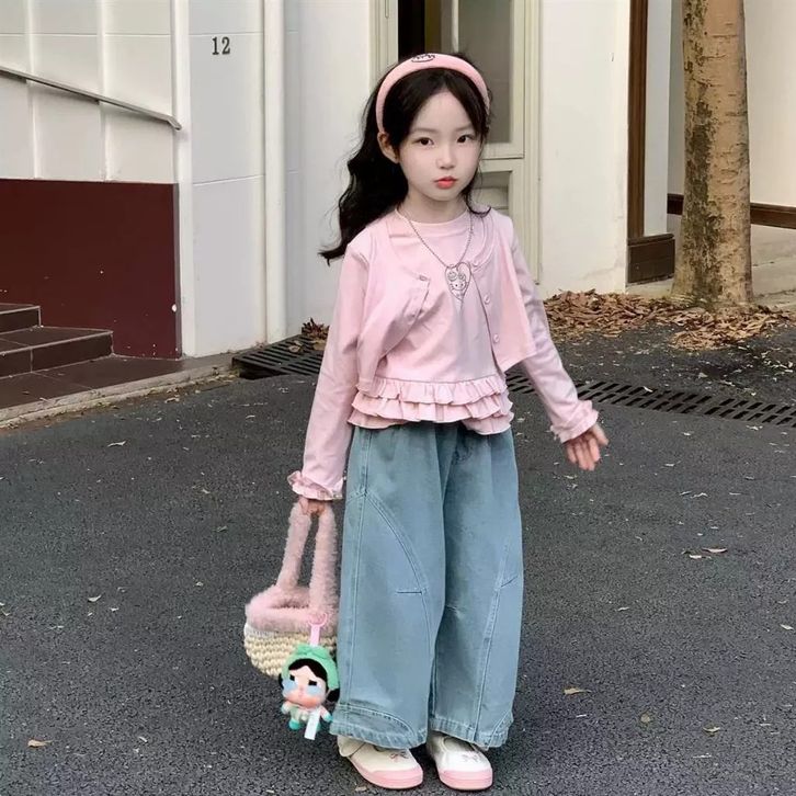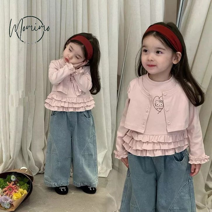 Setelan Jeans Anak Perempuan One Set Anak Cewek Atasan Lengan Panjang + Celana Kulto Jeans