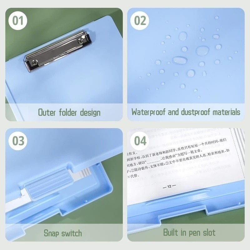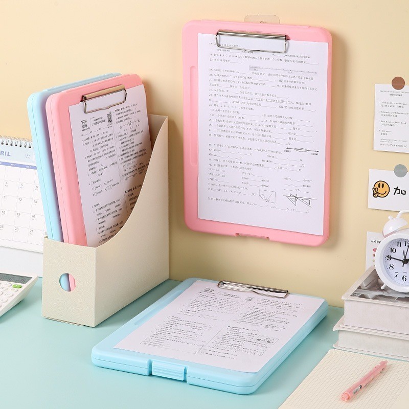 A4 2 In1 Clipboard + Storage Alas Papan Ujian Papan Jalan Klip Kertas Ujian Clipboard Clip Board