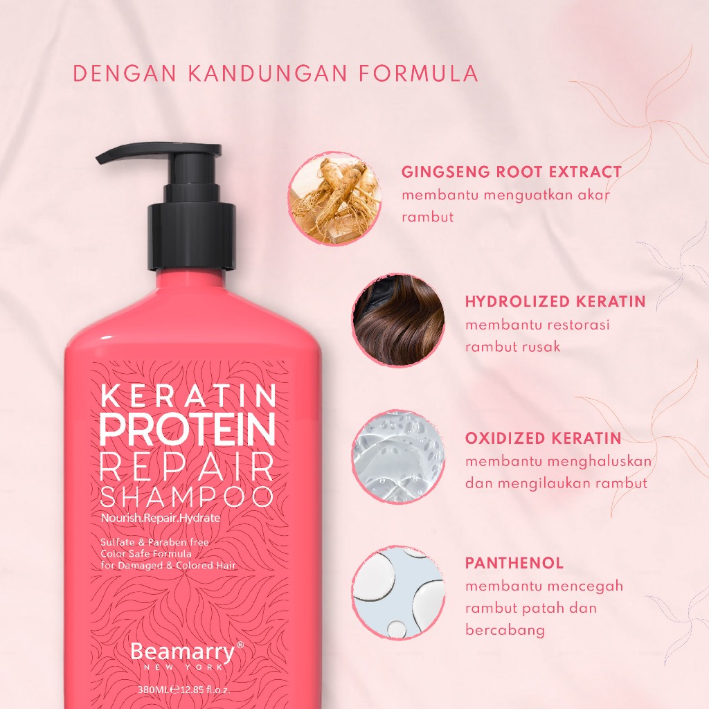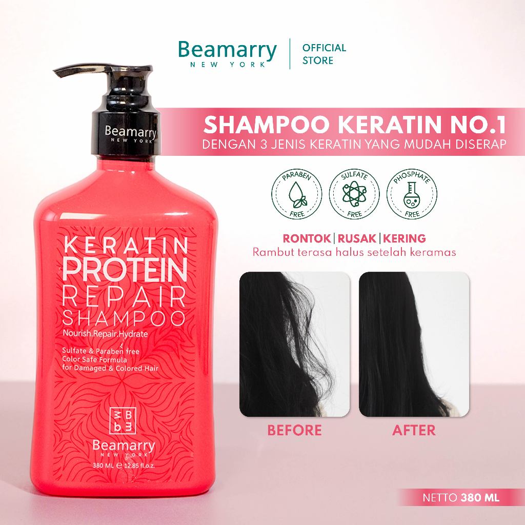Beamarry Hair Care | Shampoo Keratin Protein Repair 380ml | Goodbye Frizzy Hair dengan 3 Jenis Keratin