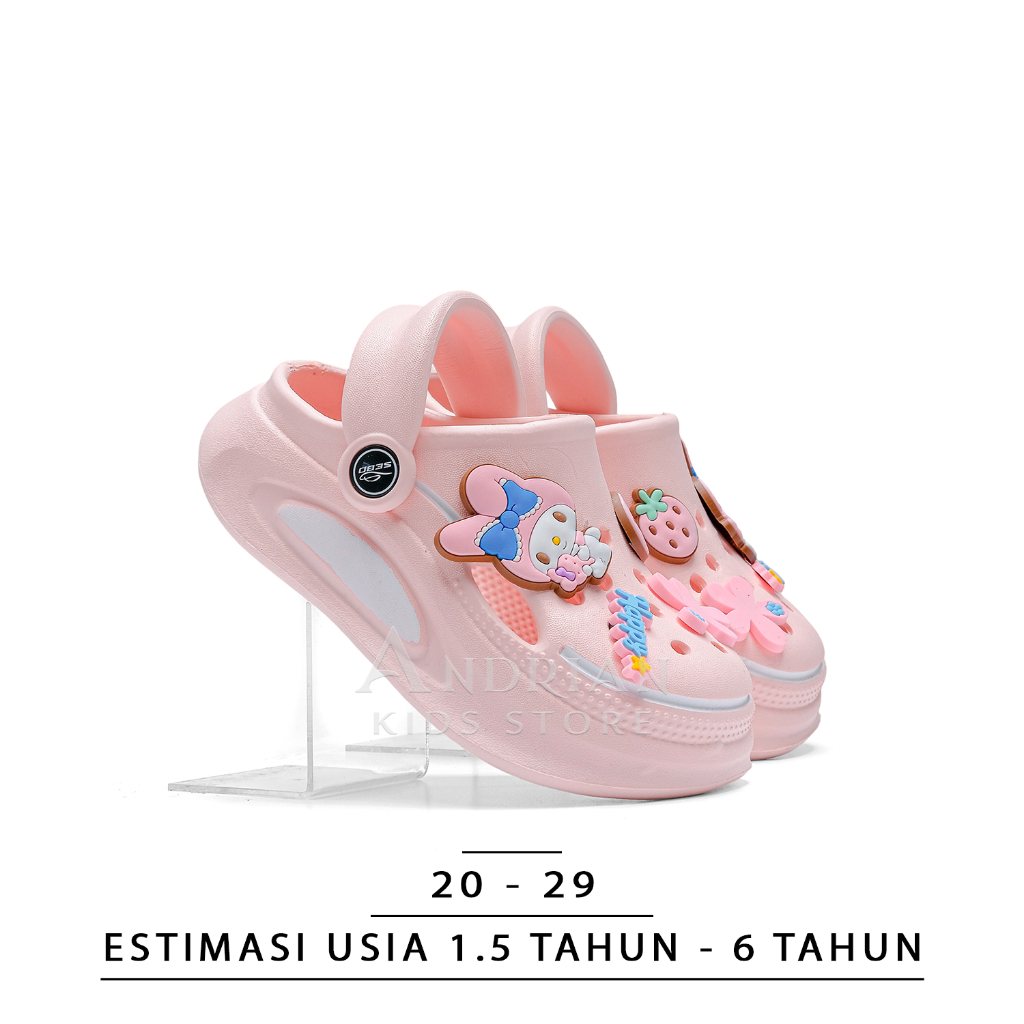 New Sandal Anak Perempuan SEBO Comfy Clogs Karakter Stroberi Bunga Viral 1 - 6 tahun