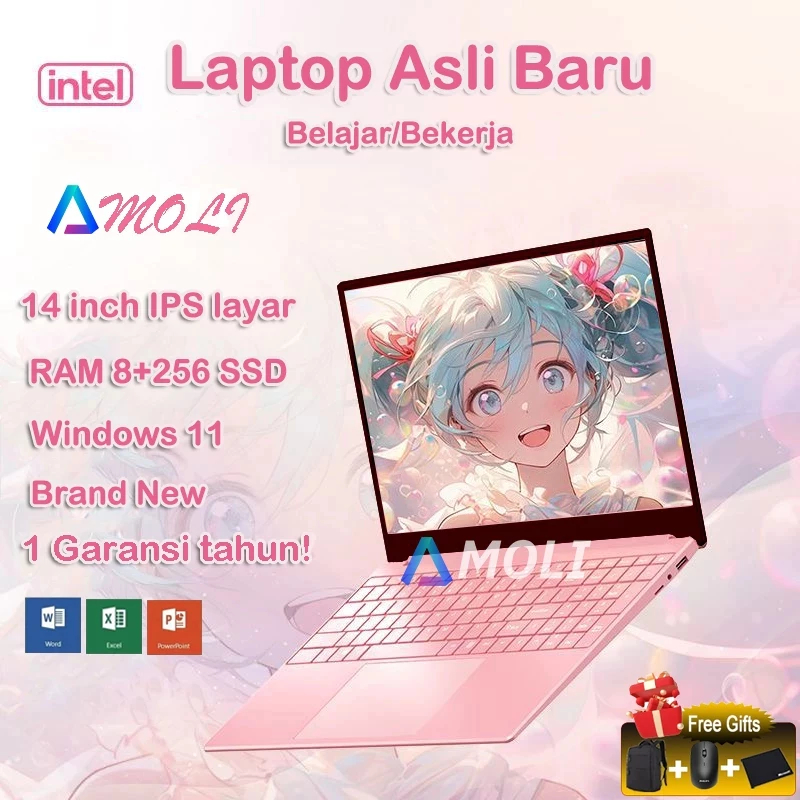 [laptop untuk kuliah] AMOLI Laptop baru 14'' 8G+256GB SSD N4000 ,Win11+Office+gift,mahasiswa/kantor laptop terbaru
