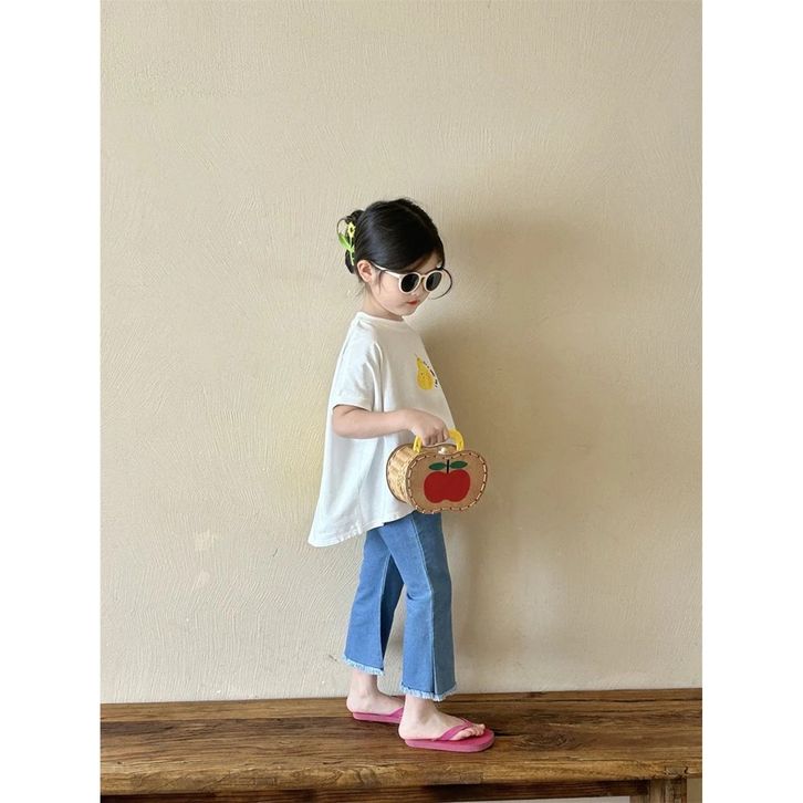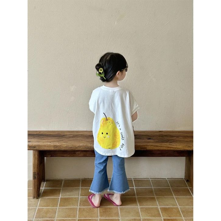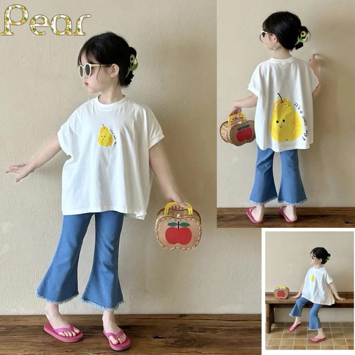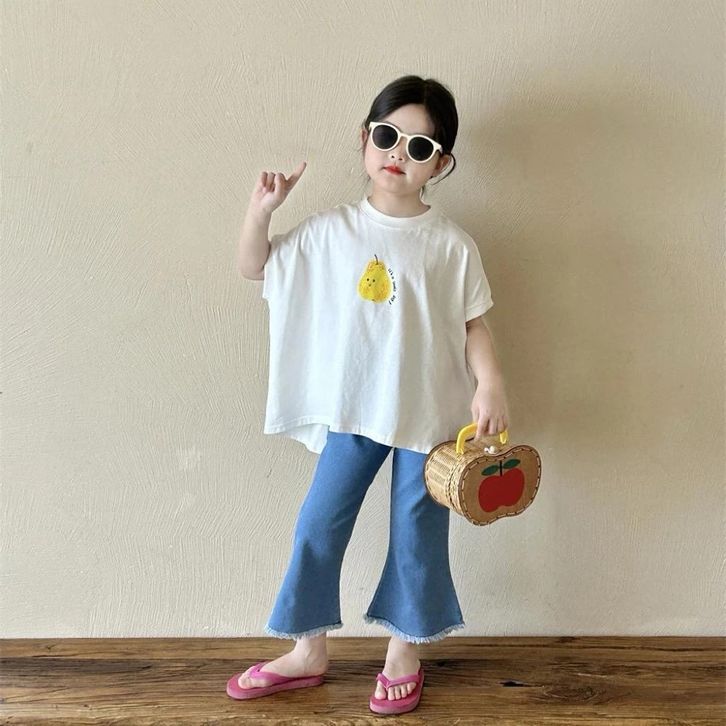 2-10Tahun Setelan denim kaos oversize pear baju anak perempuan cantik ootd putih jeans