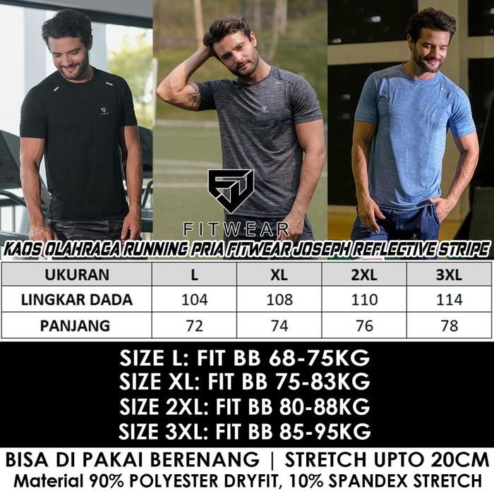 Fitwear - Kaos Olahraga Running Pria JOSEPH REFLECTIVE STRIPE - L - 3XL Sport