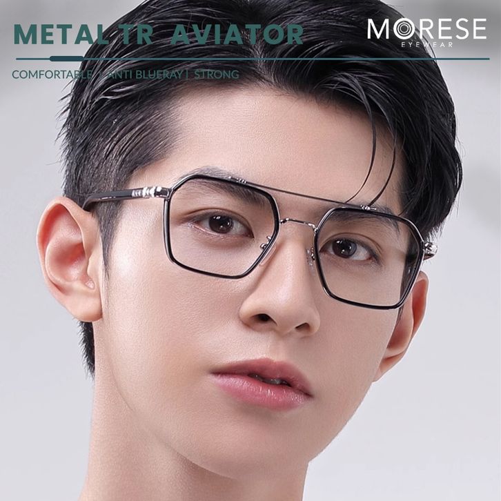 Morese Kacamata Antiradiasi Blueray M0Del Aviator Metal+TR90 Ringan Fashion Retro Fashion Unisex Pria Wanita Bisa Minus