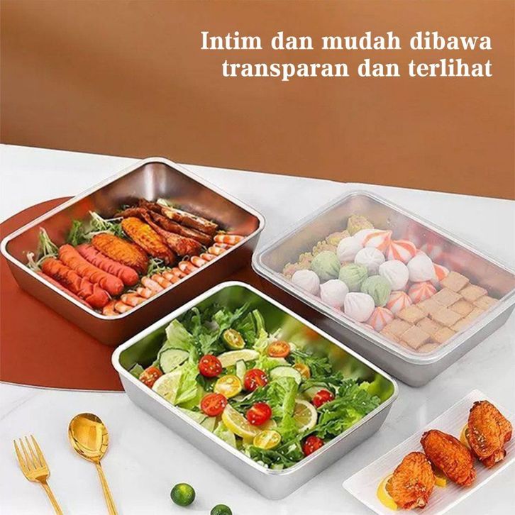 Food Container Stainless 304 Wadah Makanan Stackable Box Kotak Wadah Makanan Kulkas Cocok Dengan Tutup 26cm mainan