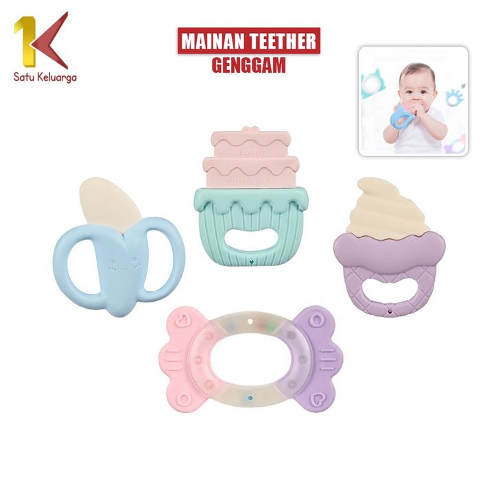 PREMIUM Satu Keluarga Mainan Kerincingan Bayi Genggam M383 Teether Gigitan Bayi Karakter Lucu BPA Free obigr