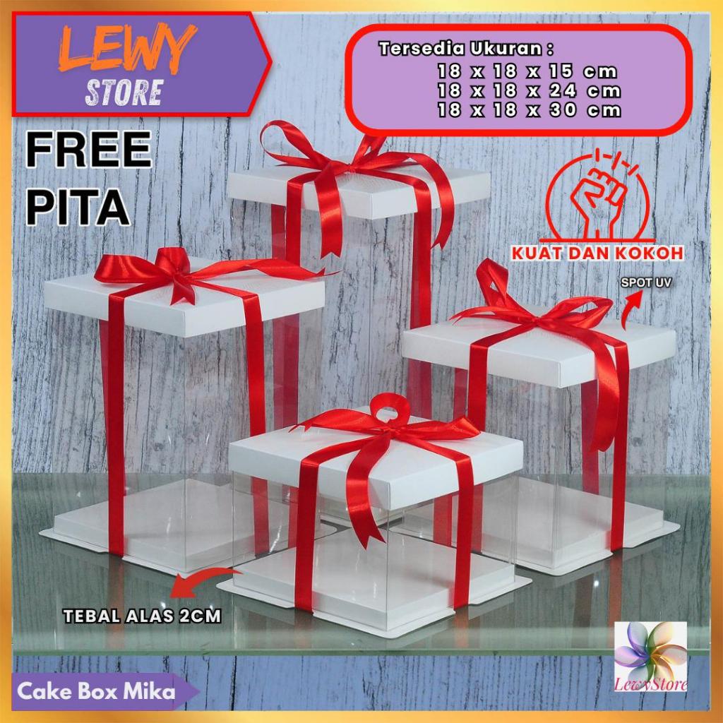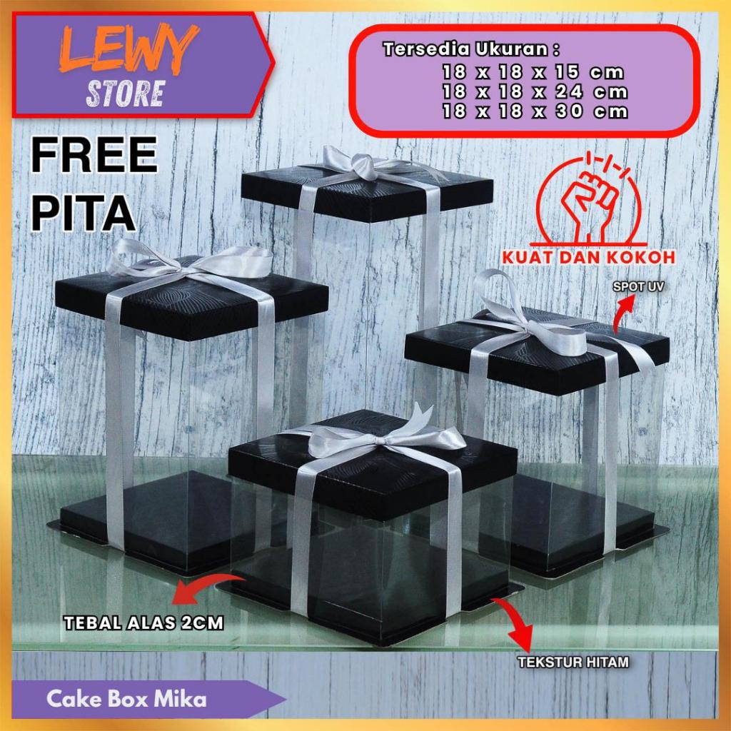 Cake Box Mika Dus Kue Kotak Kue Transparant 18x18 cm Tutup Hologram Kotak Kado Kotak Hadiah Dus Kue Mika Gift Box Kotak