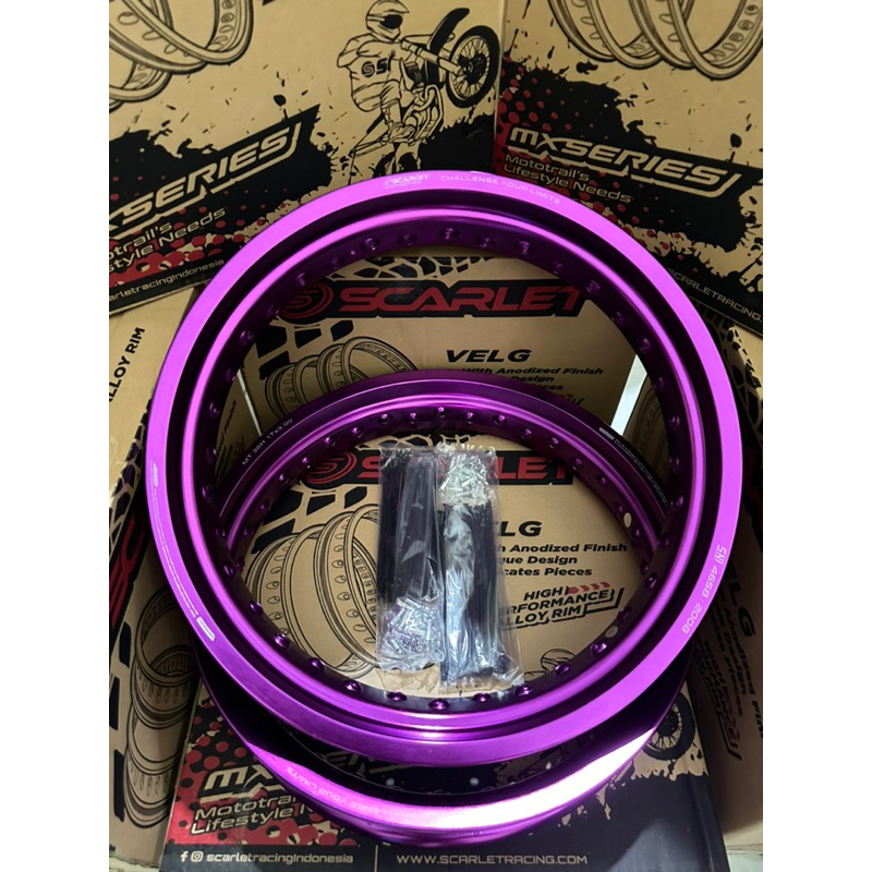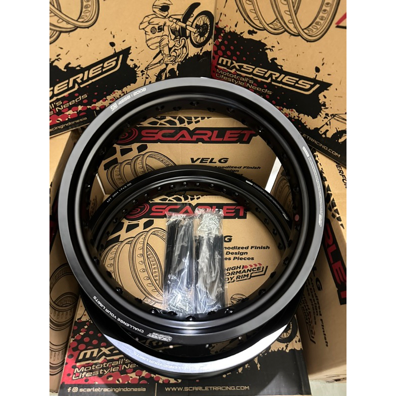 Velg pelek velek scarlet supermoto 300 350 ring 17 set depan belakang H36 + jari-jari klx crf wr