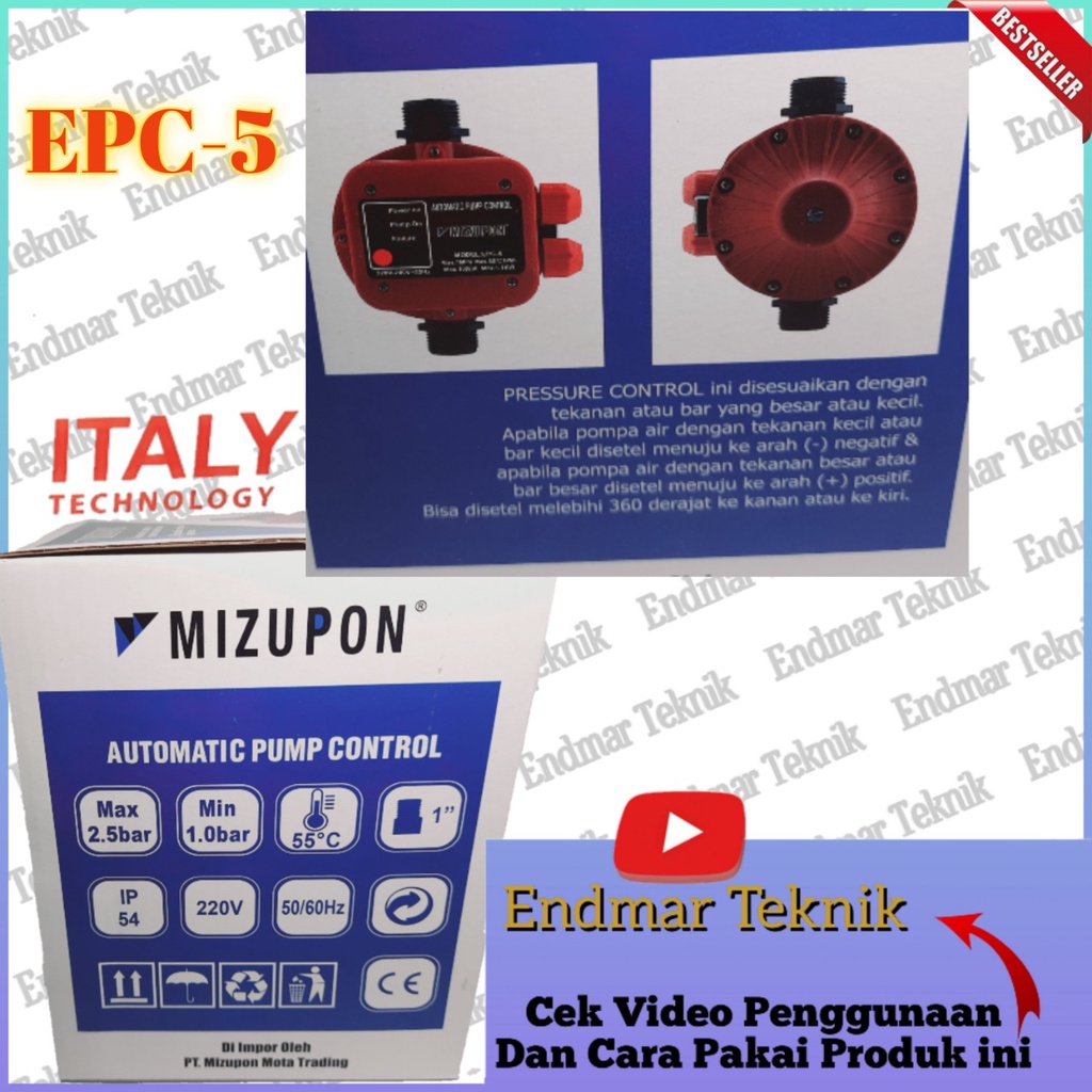 MIZUPON EPC-5 AUTOMETIC PUMP CONTROL OTOMATIS POMPA AIR NEW AUTO RESTART SUPER QUALITY Gratis Sok Drat Dalam Rucika SDD