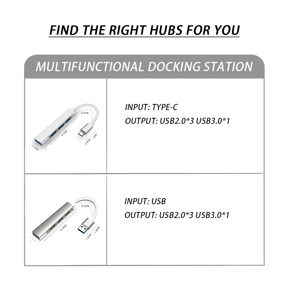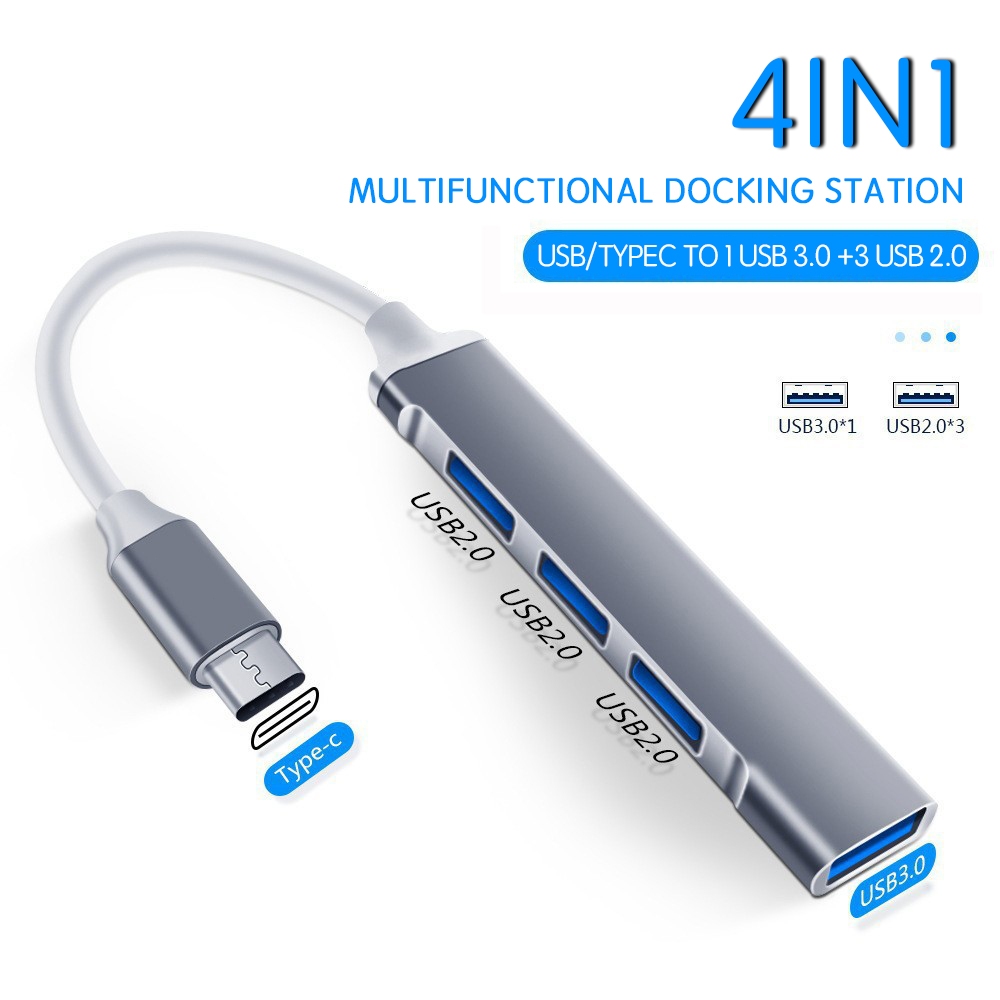 4in1 Type C/USB Mini Hub Stasiun Dok USB Docking Station Splitter Multifungsi High Speed Multiple Extension Hub Hub Conv