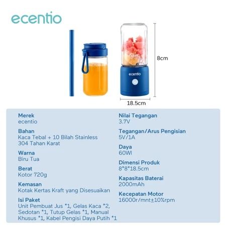 Gratis ongkir - Ecentio Blender Portable 380ml+380ml l Bisa untuk Jus dan MPASI Bayi - 8 Mata Pisau