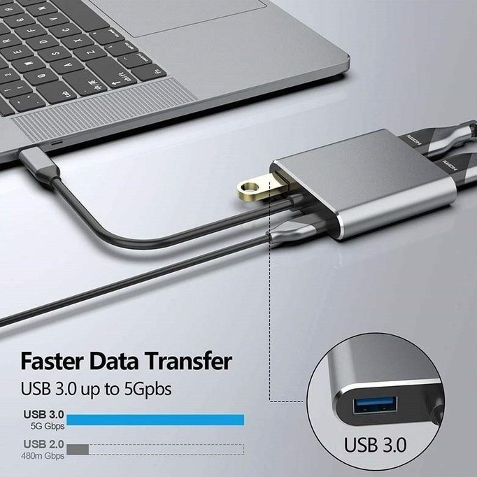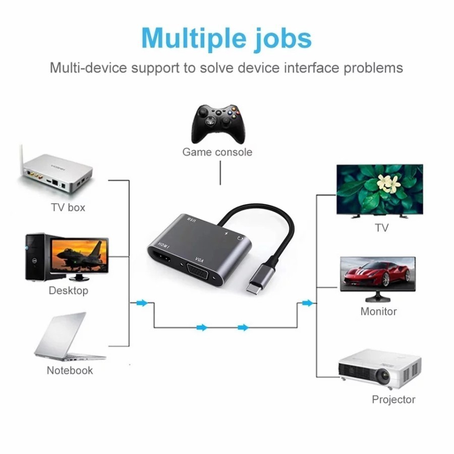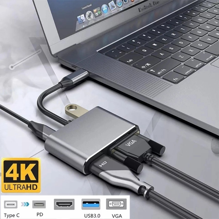 Converter Konektor USB Type C to 4 in 1 HDMI VGA USB 3.0 PD USB C 4K Hub Dongle