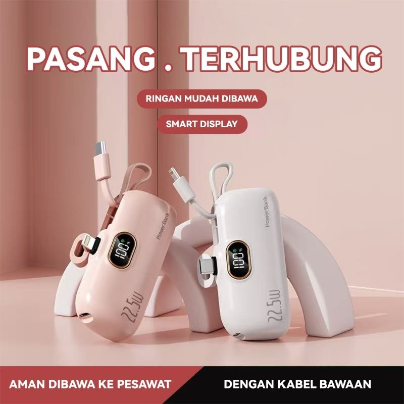 PowerBank Mini 8000mAh 22.5W Fast Charging Portable Kabel Type-C / IOS Lightning Mini Emergency Charge