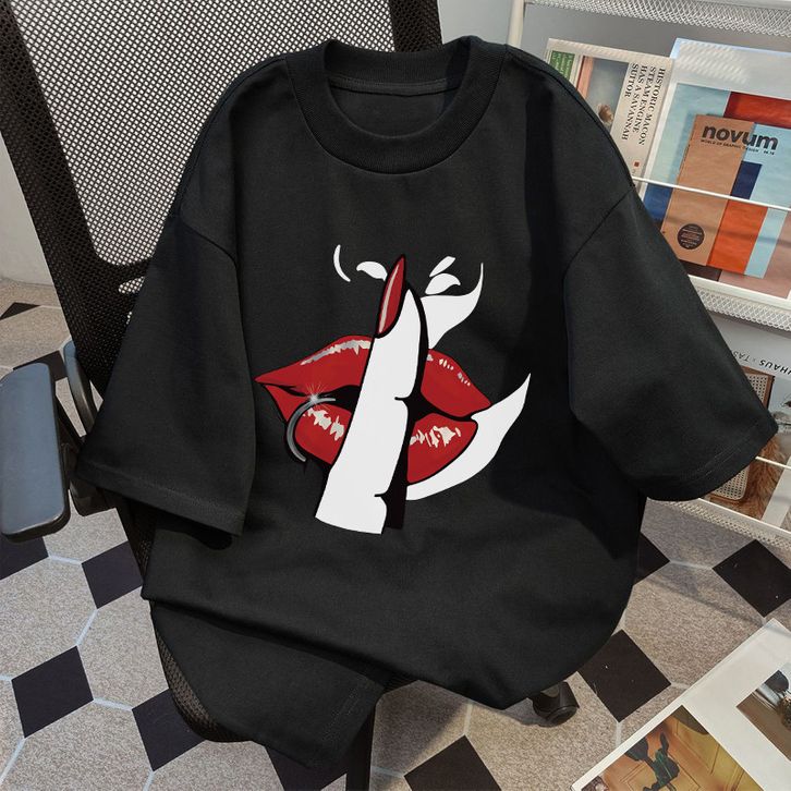 T-shirt Baju Kaos Atasan Wanita Korean Style Hitam Dewasa Distro Lengan Pendek Keren Premium Oversize Unisex C1044