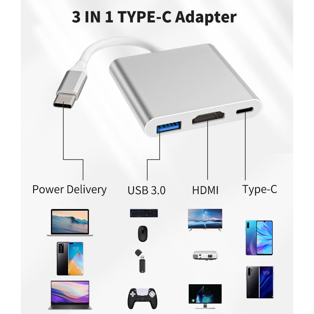 Type C OTG Hub Adapter 3 in 1 Multiple Type C to HDMI USB 3.0 PD Fast Charge USB to HDMI Converter