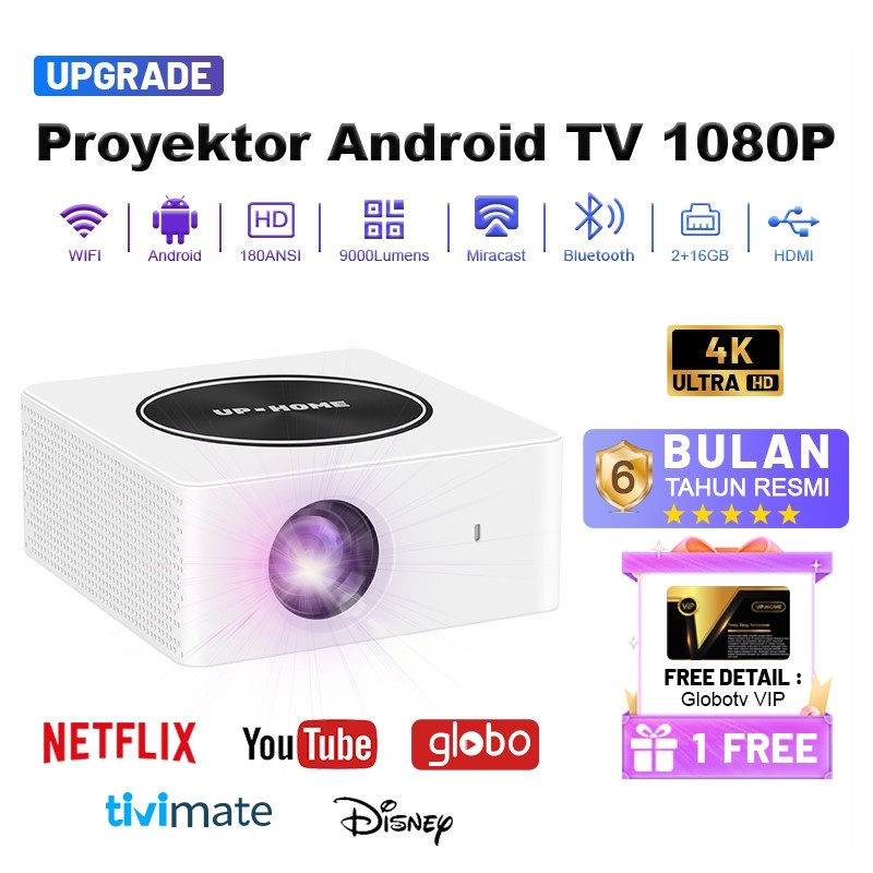 Proyektor Mini 1080P 7000 Lumen Smart Projector Android Tv Layar Tancap 9.0 Ram 2G/16G Infocus Murah Portable Untuk Hp