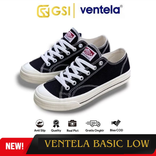 sepatu kanvas pria - Ventela Basic Low Black Natural Original