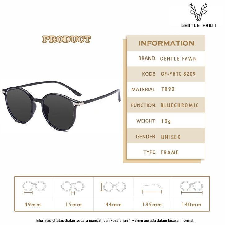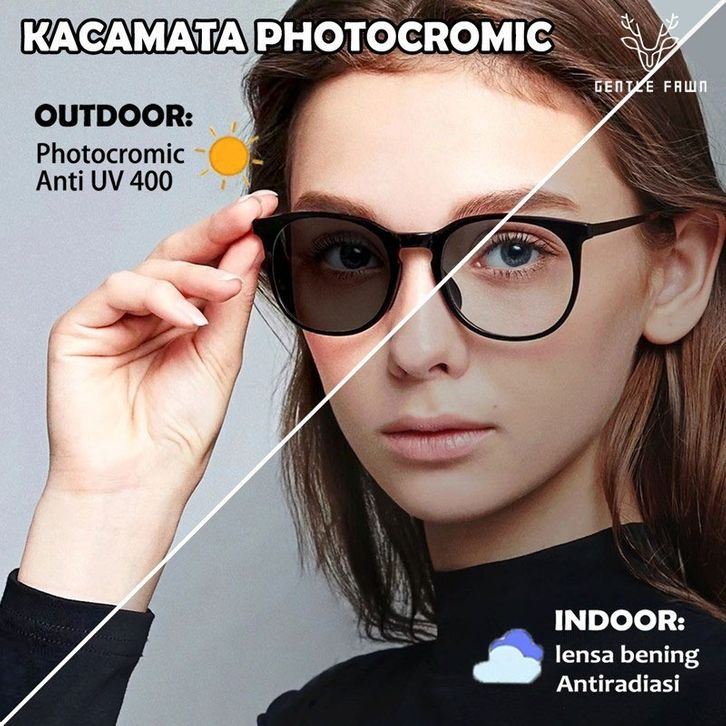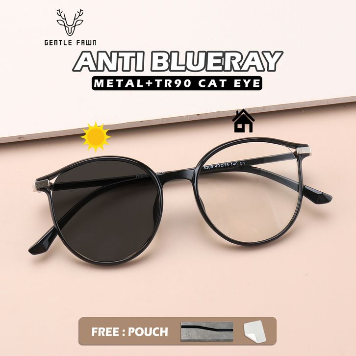 GENTLE FAWN Kacamata Antiradiasi Blueray Photocromic Style Oval TR90 Fashion Wanita dan Pria Terbaru 8209