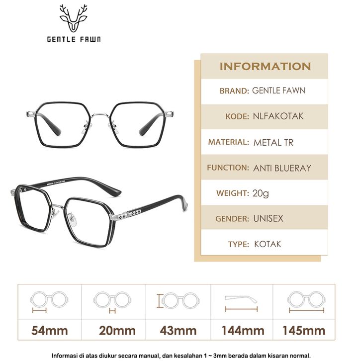 Gentle Fawn Kacamata Antiradiasi Blueray Sinaru Bentuk Kotak Retro Style Keren Bisa Minus Fashion Pria Metal + Tr90 Nya