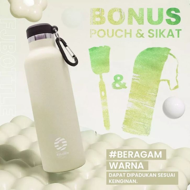 FJBOTTLE - Botol Stainless Steel Kapasitas 750mili Free Pouch & Sikat - Botol Minum Tumbler Olahraga Stainless Stee75