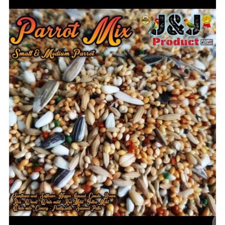 J&J Parrot Mix milet campur repack 1kg pakan burung parkit lovebird falk parbeng hamster