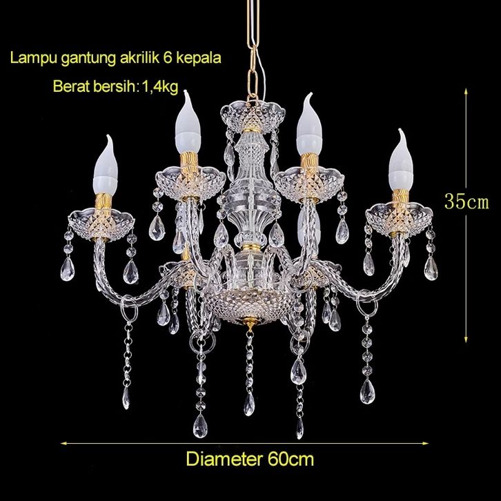 ✌Termurah-✌Gantung Kristal Akrilik Isi 6/8/8+4 Bola Lampu/ Dekorasi Termasuk Bohlam Lampu Gantung Dekorasi