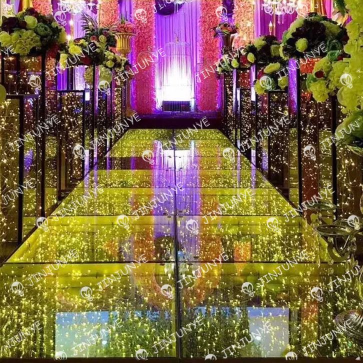 ❣️Garansi&❣️Kuning 4 Pcs/Set Lampu Kaca Panggung Stainless Steel Lantai Kaca Tempered Glass Stage Lantai Akrilik
