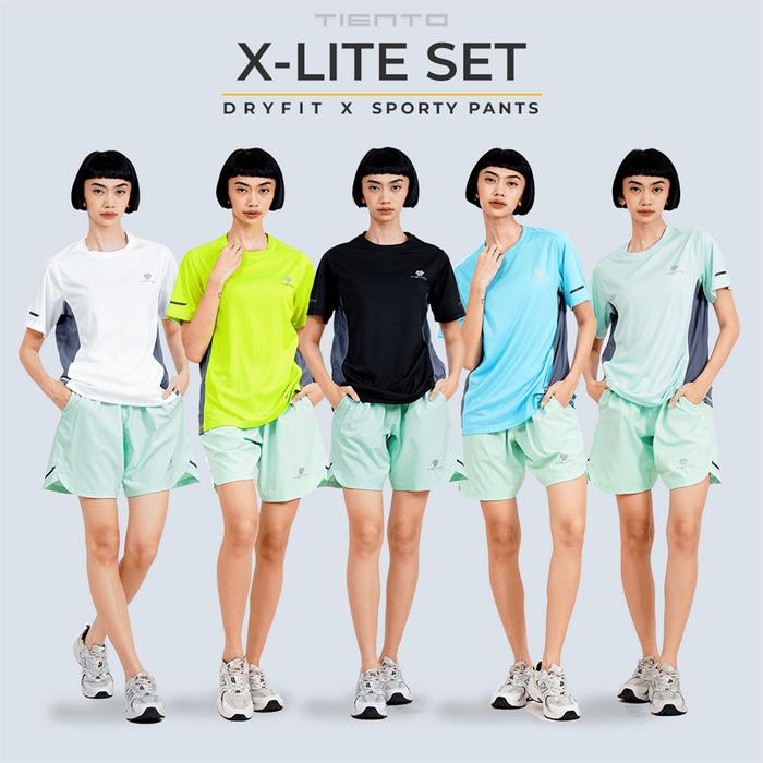 Tiento Setelan Olahraga Kaos Lari Dry Fit Lengan Pendek Baju Running Celana Pendek Green Gym Fitness Sport Extra Lite