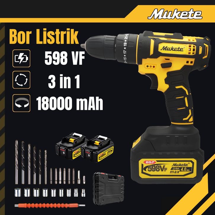 Mukete Bor Impact Bor Impact Baterai Bor Batrai Baterai Bor Set Lengkap Mata Bor Cordless Drill Full Set Of Drill