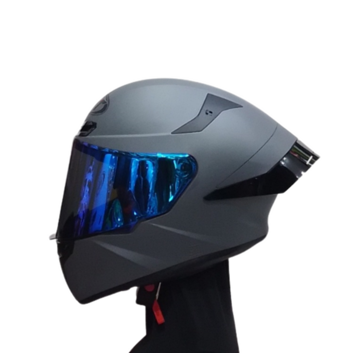 HELM KYT TT COURSE SOLID GORILLA GREY DOFF KACA IRIDIUM BIRU SPOILER 03.ORIGINAL