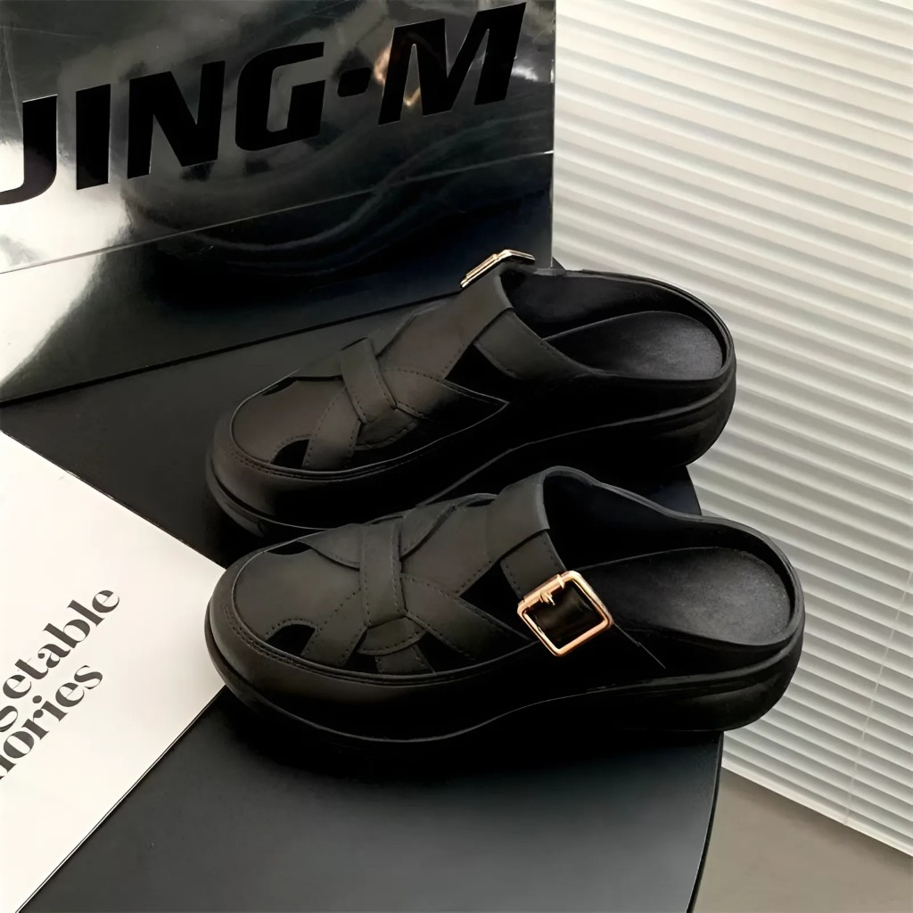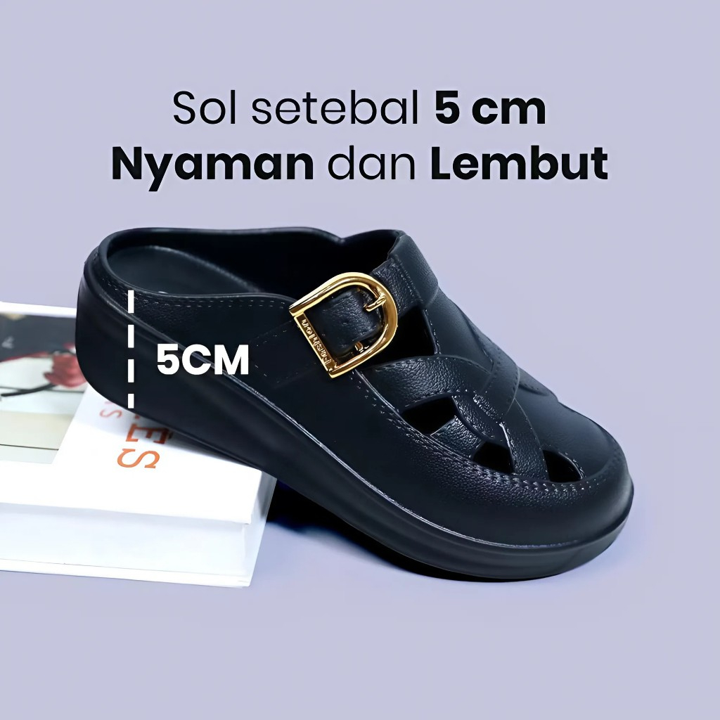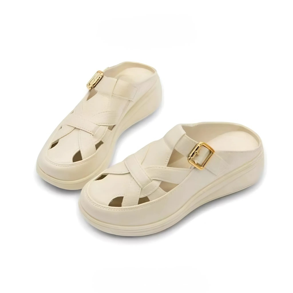 Sandal Sepatu Wanita Dewasa Wedges Slip On Remaja Strap Gesper Korean Style Bahan Karet Jelly Outdoor Size 36-41