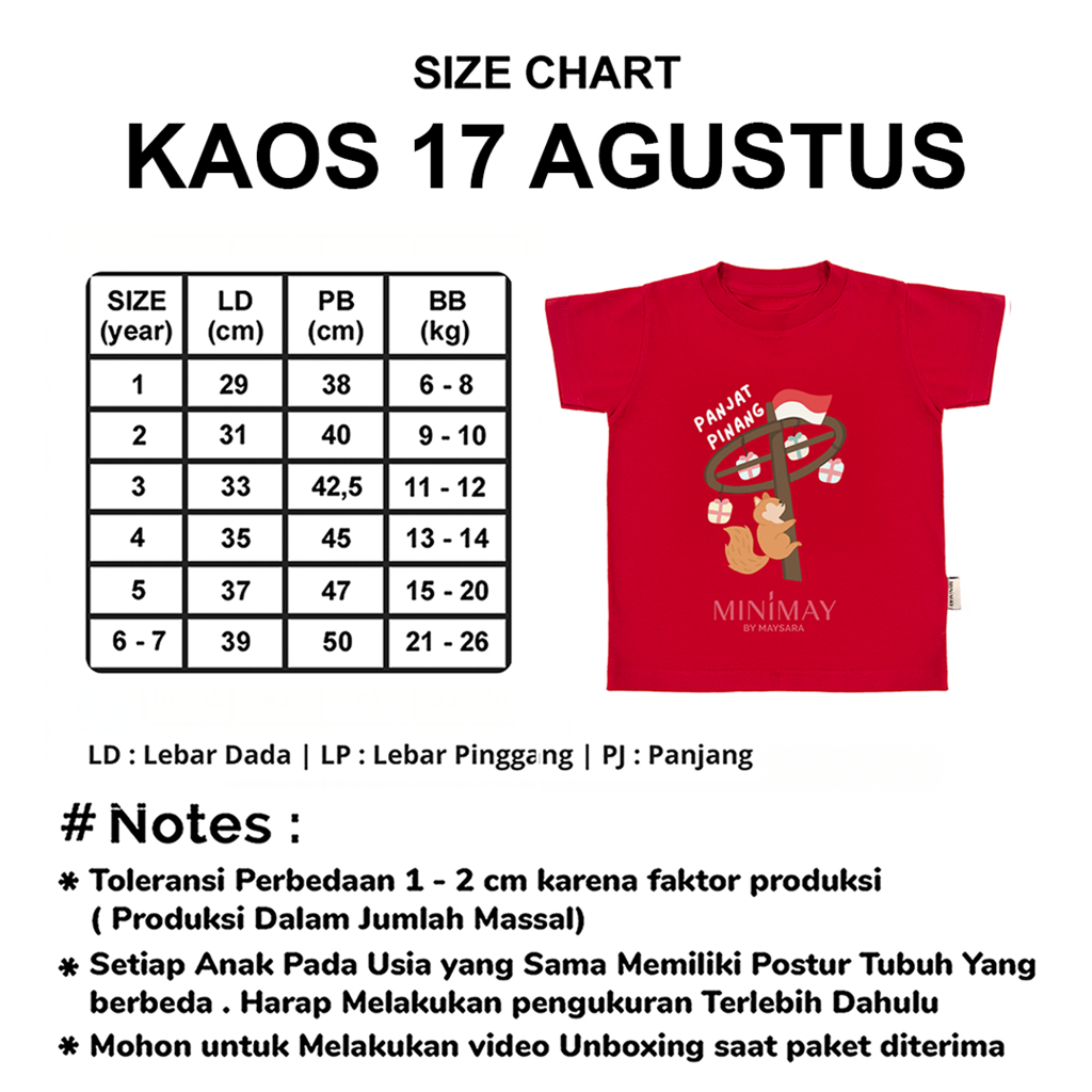 TERMURAH Kaos Anak 17 Agustus Indonesia Baju Lomba Usia 1 2 3 4 5 6 Tahun Minimay Maysara