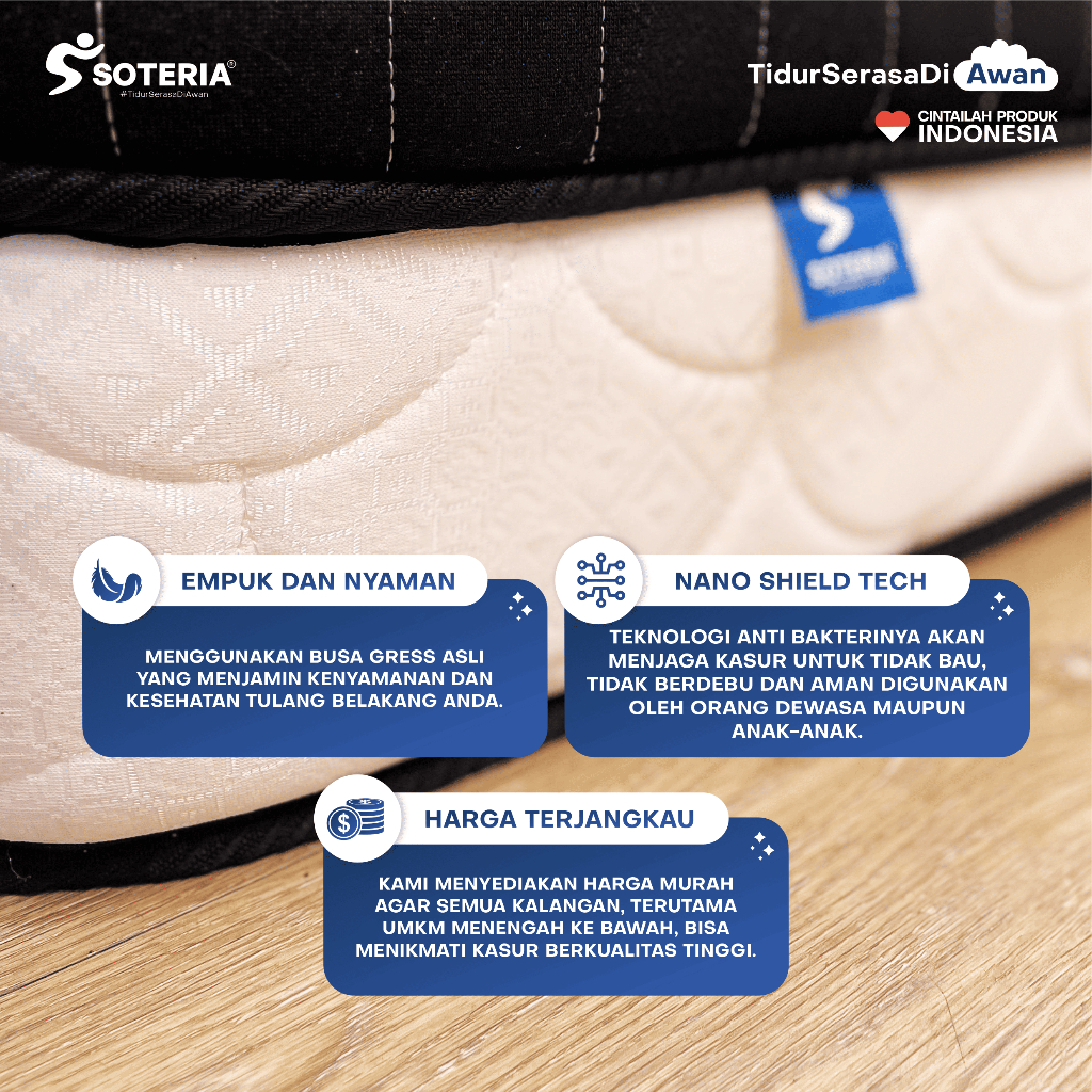 SOTERIA KASUR PLUSHT0P ROLL EXTRA PLUSH T0P HIGH-DENSITY FOAM SWISS TECHNOLOGY / KASUR PORTABLE ANTI KEMPES TEBAL 24CM BONUS T0PPER EMPUK SEPIROTH SERIES GARANSI BRAND 15 TAHUN
