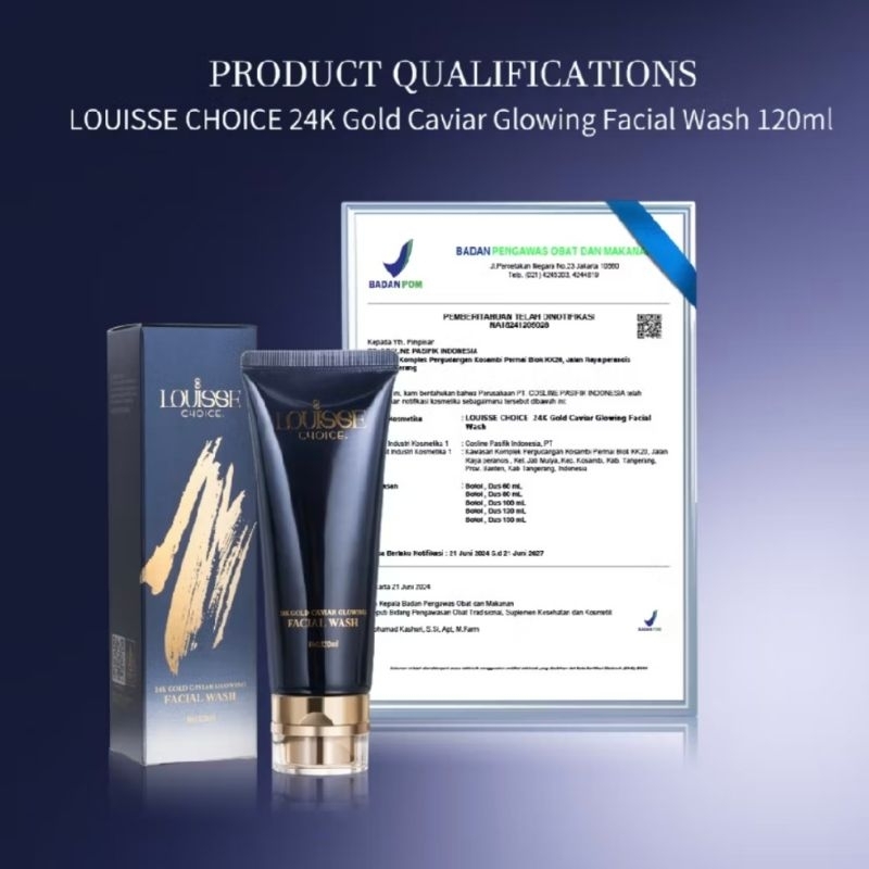 LOUISSE CHOICE 24K KUNING MENGKILAP CAVIAR GLOWING FACIAL WASH 120ML