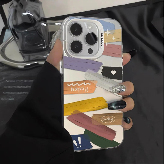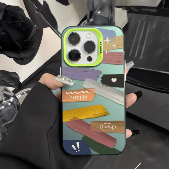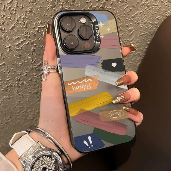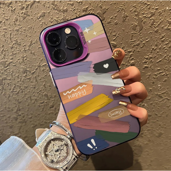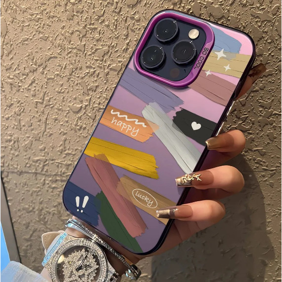 Casing hp pelindung ponsel IMD grafiti perak warna-warni cocok untuk IPhone 15 Pro Max 15 Plus 11 Pro Max 11 7 Plus 12 P