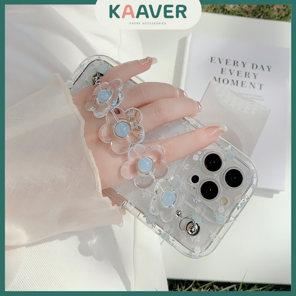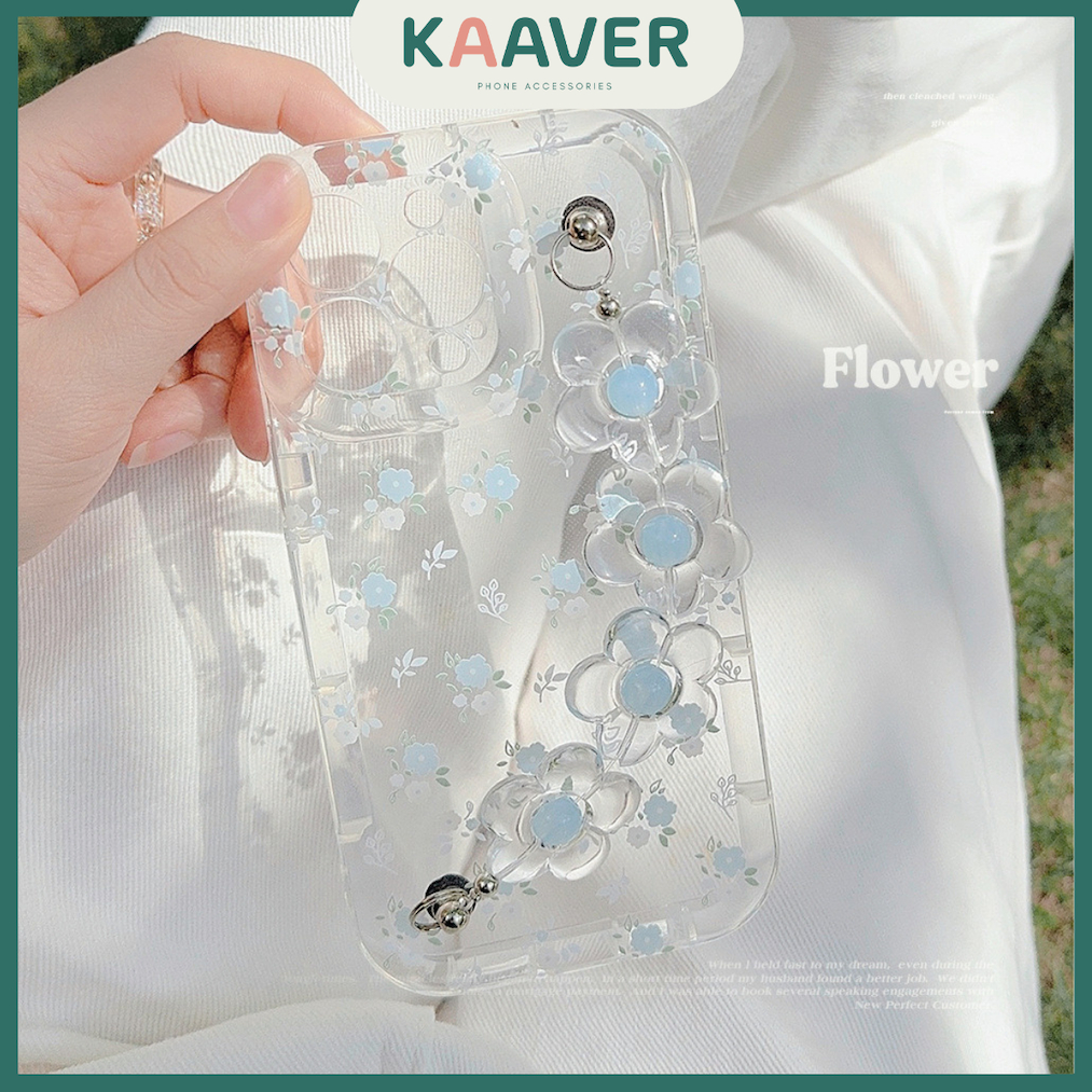 KAAVER - Flower White Blue Brelet TPU Silikon Softcase iPhone 11 12 13 14 15 16 Pro Max Plus +