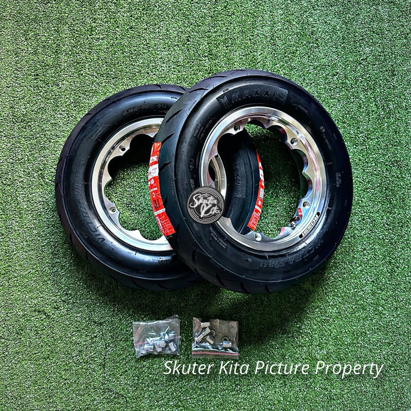 Peketan Velg Vespa Vrossi Ring 10 VRX Polish dan Ban Maxxis Victra S98 3.50 Ring 10 Include Pasang