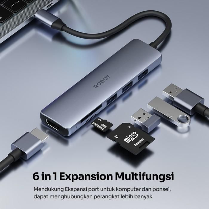 HUB Port USB TypeC Type-C Robot HT240S 5in1 4K HDMI SD TF Card Reader
