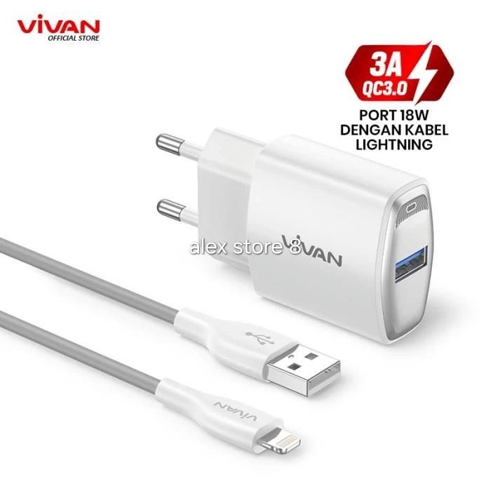 Charger Vivan Power Oval 18W Quick Charge 3.0 3A - Lightning Hitam