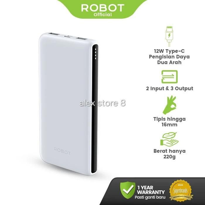 Power Bank Robot RT180 10000MAh Dual Input Type-C Micro-USB Powerbank - Putih