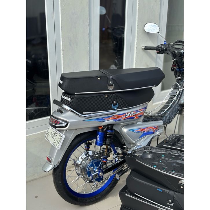 JOK HONDA SUPERCUB BYBABA MENGGUNAKAN KULIT MBTECH RIDER / MOTIF BERGARIS ORIGINAL BYBABA JOK HONDA SUPERCUB SRIT BYBAB