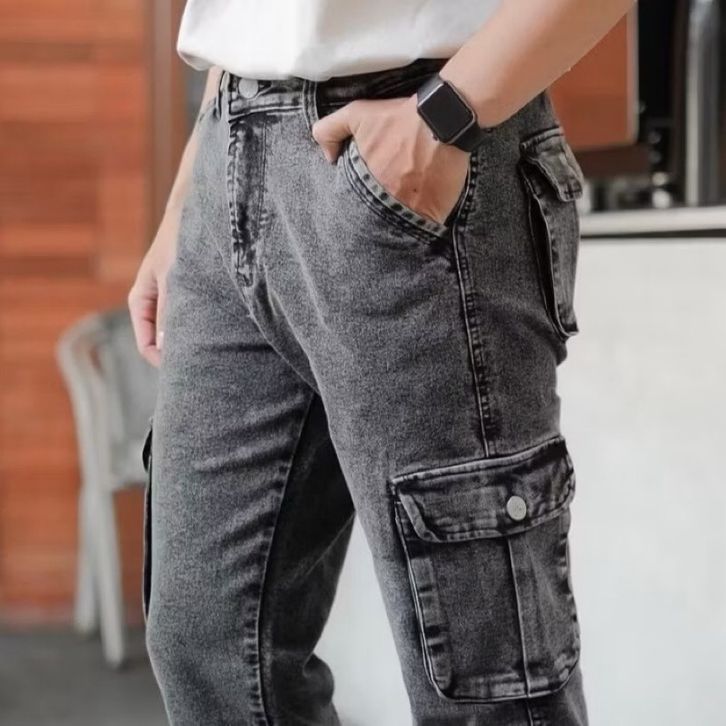 TERMURAH Celana Cargo Canvas Semi Jeans Panjang Unisex - 6 Saku Aktif - Pria, Jeans Tebal Dewasa odirl